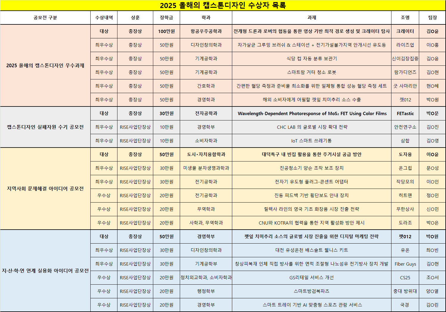 <2025 충남대학교 RISE사업단 올해의 캡스톤디자인 경진대회 결과 발표>